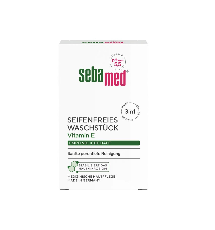 La pastilla limpiadora sin jabón de Sebamed ofrece una limpieza suave, específica para pieles sensibles y problemáticas. Con un pH de 5,5, favorece las funciones protectoras naturales de la piel y la protege de las agresiones externas.