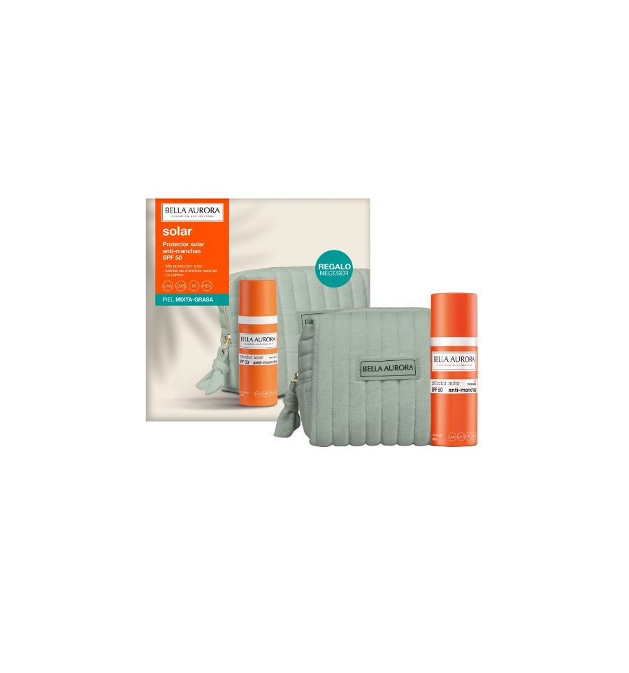 El Pack Gel Solar SPF50 de Bella Aurora está diseñado para piel mixta-grasa y se presenta en un estuche que incluye un fluido solar de alta protección y un neceser de algodón. Ofrece protección diaria contra radiaciones UVA, UVB, infrarrojos y luz azul, complementando tratamientos antimanchas. Su fórmula contiene activos despigmentantes que ayudan a atenuar manchas existentes y prevenir nuevas, promoviendo un bronceado uniforme. Incluye antioxidantes que protegen la piel de radicales libres, responsables del fotoenvejecimiento. El gel tiene un acabado de toque seco, es libre de aceites y no comedogénico, respetando la piel y la naturaleza. Ha sido testado bajo control dermatológico y es recomendado para piel mixta o grasa que busca protección solar y atenuación de manchas. Se sugiere aplicar generosamente sobre el rostro, cuello y escote como último paso de la rutina facial y antes de la exposición solar, renovando la aplicación regularmente.