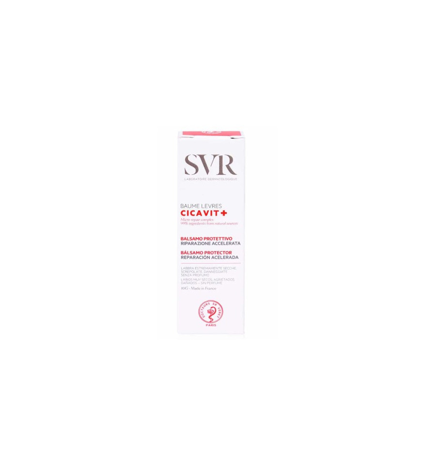 El producto descrito es el "CICAVIT+ Lèvres," un bálsamo protector de reparación acelerada diseñado para tratar labios secos a muy resecos, agrietados, dañados, desgarrados e irritados. Aquí tienes un resumen de sus características y beneficios: