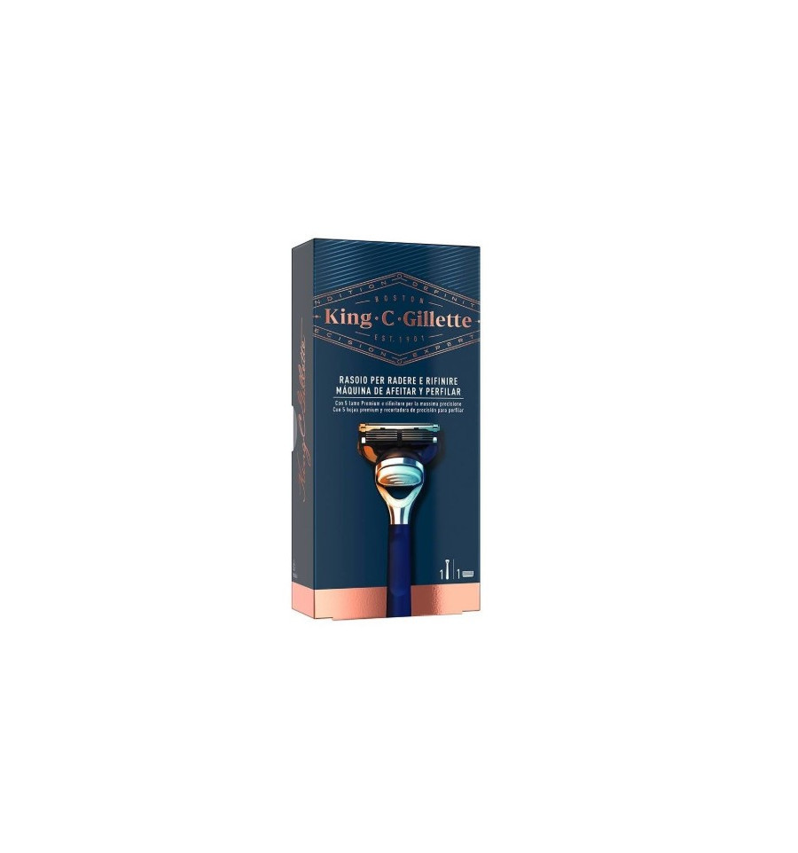 Consigue un afeitado apurado y crea líneas limpias y definidas para tu barba y bigote con la Máquina de Afeitar y Perfilar King C. Gillette. Con cinco hojas de alta calidad y un recortadora de precisión incorporada para perfilar la barba, esta máquina te proporcionará un afeitado cómodo, que te permitirá crear una barba bien arreglada o un bigote llamativo que te harán destacar. La precisión del afeitado puede ayudarte a tener un aspecto perfecto y a sentirte mejor.