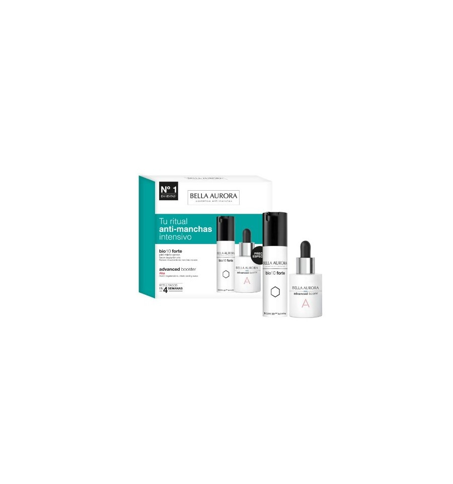 Bio10 forte Tratamiento antimanchas intensivo para piel mixta-grasa. Con la exclusiva tecnología despigmentante de los laboratorios Bella Aurora B-CORE 221TM. Un sistema de encapsulación y liberación dirigida que actúa directamente sobre las células productoras de melanina donde libera el activo despigmentante obteniendo la máxima eficacia.